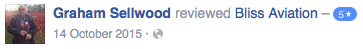 "A special thanks to Charles and the team for my experience day today. It was an amazing time, and we were made to feel very welcome. Never ever thought I would fly a plane. Thank you to the bliss aviation team. Rob Hathway"
